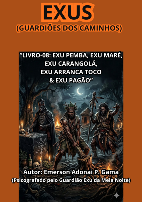 Desvende o véu que separa o mundo carnal do domínio das sombras e descubra a força avassaladora dos guardiões que regem os segredos mais profundos da Quimbanda: nesta obra visceral, as trajetórias de Exu Pemba, Maré, Carangolá, Arranca Toco e Exu Pagão são reveladas em detalhes nunca antes vistos, expondo desde suas origens ancestrais até o poder absoluto contido em seus pontos de força e tronqueiras. Prepare-se para dominar a ciência das oferendas e o manejo de energias que removem raízes de maldade, limpam destinos através das marés e libertam mentes sob a luz da sabedoria pagã; este não é apenas um livro de história, mas um arsenal de poder espiritual indispensável para quem ousa cruzar o limiar e caminhar lado a lado com os senhores das encruzilhadas.